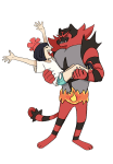 i have just been informed that incineroar, the fucking pokemon thats based on wrestlers, knows a bunch of wrestling and fighting attacks, looks like this