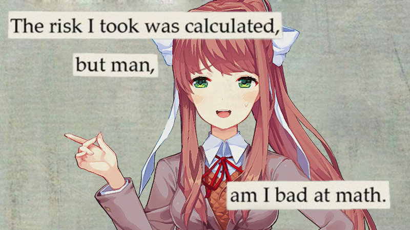 Monika: The benefits of deleting her would be I would get pushed way less.